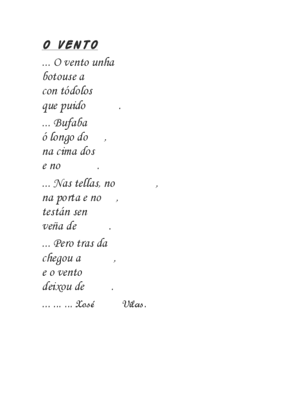 COMPLETAR o poema "O VENTO" de Xosé Neira Vilas ...