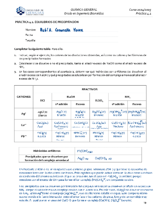 errores: en la parte 4.2.1 poner la doble flecha de equilibrio; 4.3.1 poner las reacciones globales;