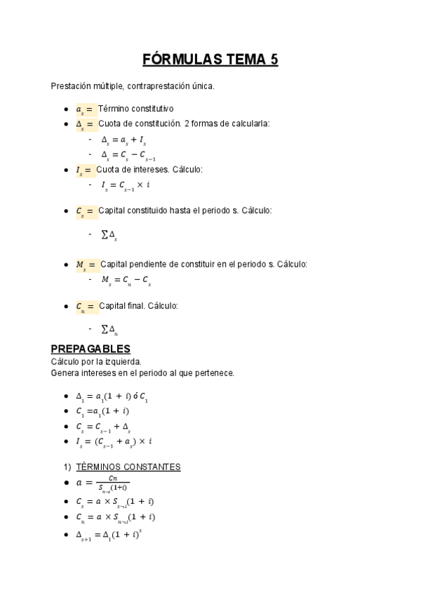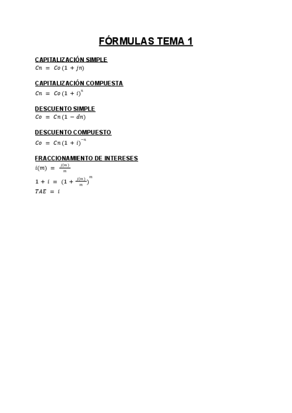 He publicado nuevos apuntes de 2º Análisis y valoración de las operaciones financieras: FORMULAS