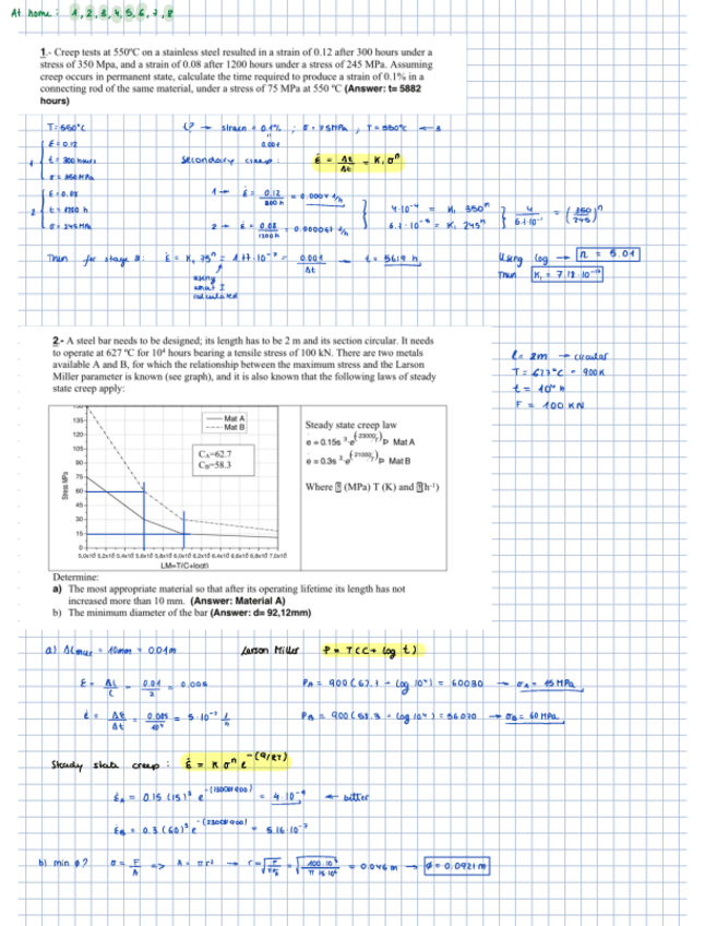 He publicado nuevos ejercicios de 2º Materiales Aeroespaciales II: 7.-Creep-Excercises.pdf