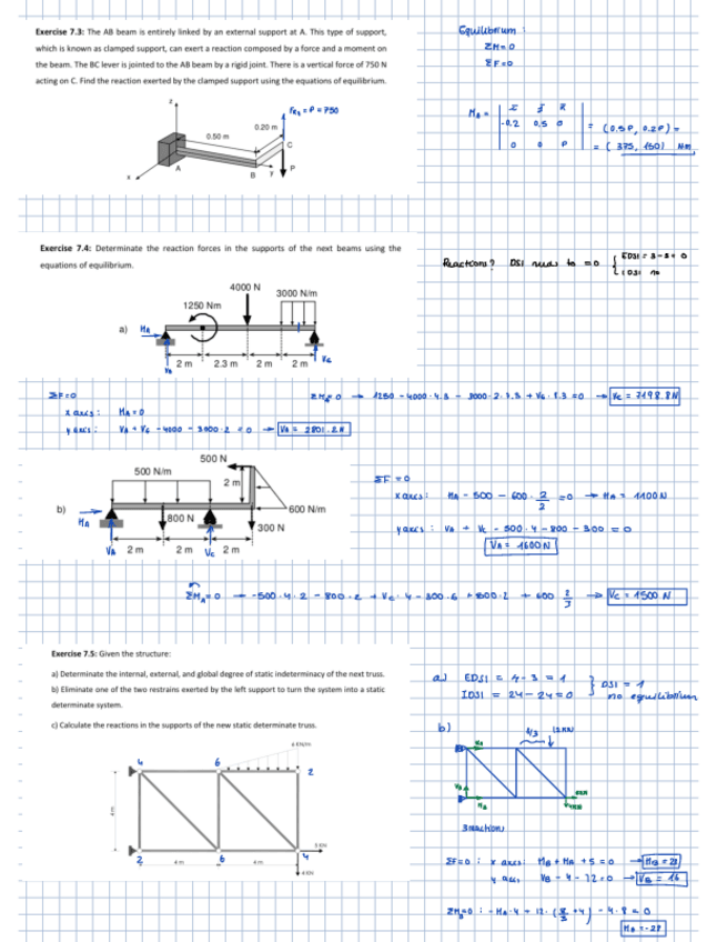 He publicado nuevos ejercicios de 2º Elasticidad y Resistencia de Materiales: 7.-Reaction-and-forces-excercises.pdf
