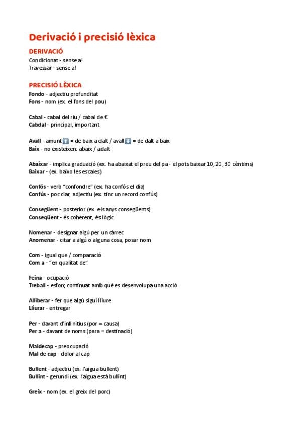 Apunts complets català derivació i precisió lèxica. Paraula d’exàmens de selectivitat.