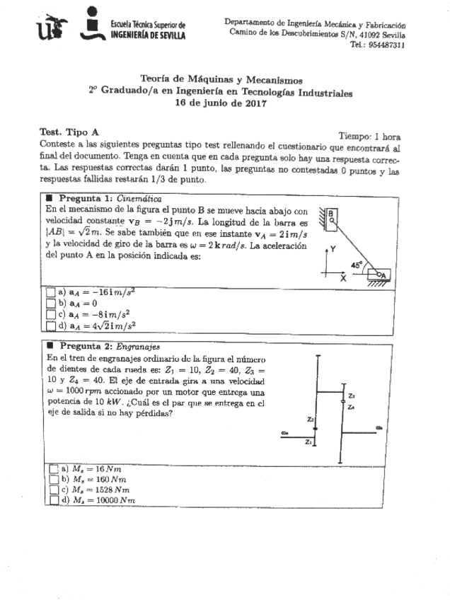 He publicado nuevos examenes de 2º Teoría de Máquinas y Mecanismos: Test Junio 2017.pdf
