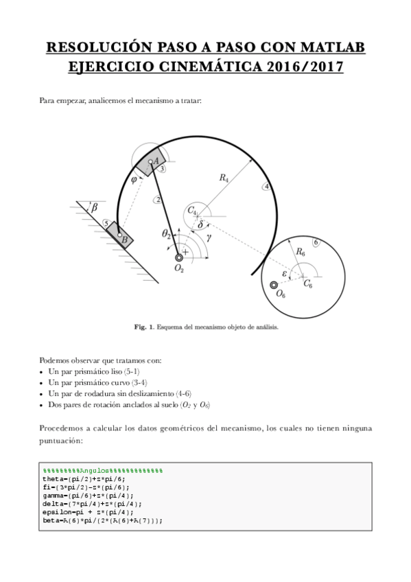 Explicación detallada de cómo resolver la práctica cinemática de TMMQ usando Matlab, tomando como ejemplo el ejercicio del año 2016/17.