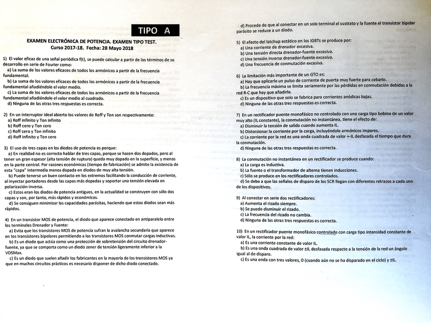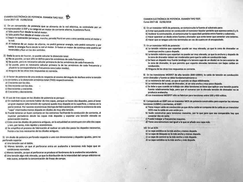 He publicado nuevos test de 3º Electrónica de Potencia: Test 2018
