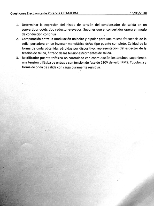 He publicado nuevos examenes de 3º Electrónica de Potencia: 1ª Convocatoria 2018 (Todo)
