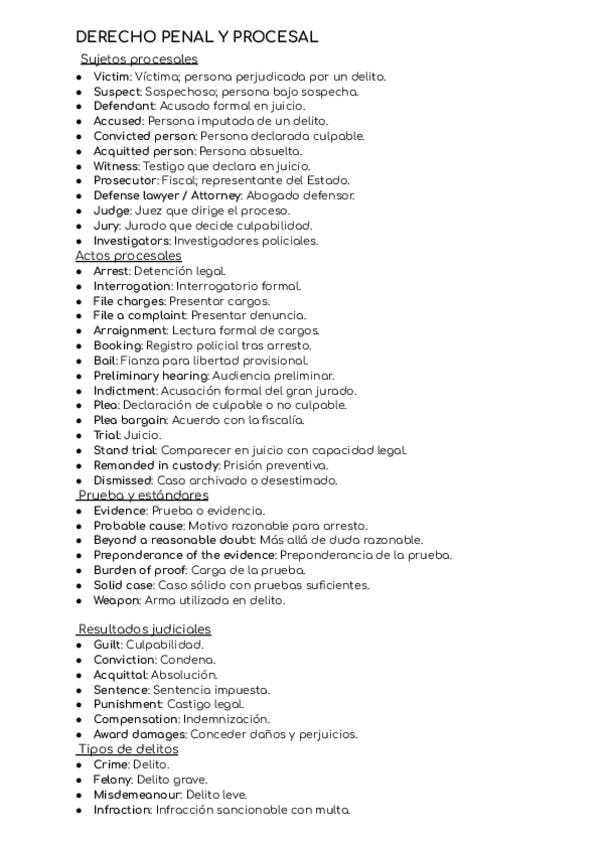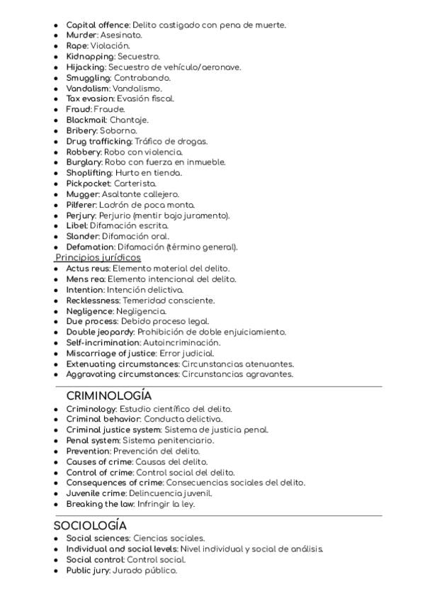 Vocabulario de inglés sobre criminología, derecho, medicina forense, etc
