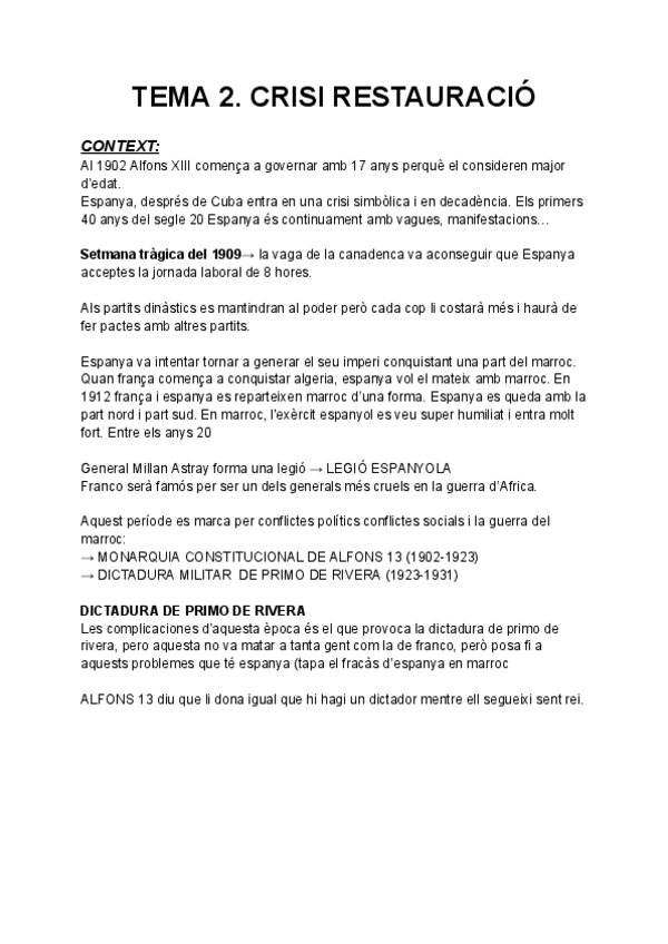 apuntes de la restauración borbónica, contienen un breve contexto principal para ahorrarse los antecedentes y así ir directamente lo necesario para estudiar selectividad.