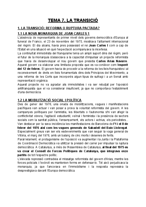 los mejores apuntes del tema de la transicion, el tema más dificil de entender está explicado de la mejor manera que jamas podrás ver, saqué un 10 en selectividad gracias a esto