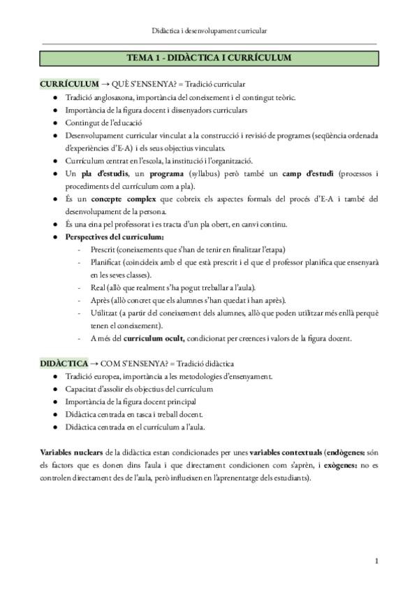 Apunts en català de l'assignatura de didàctica i desenvolupament curricular.