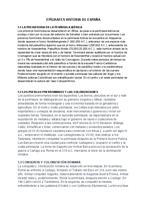 Aquí tenéis todos los epígrafes de Historia de España (Curso 2023/24)