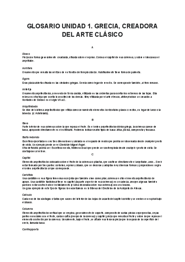 He publicado nuevos apuntes de 2º Historia del Arte: Glosarios