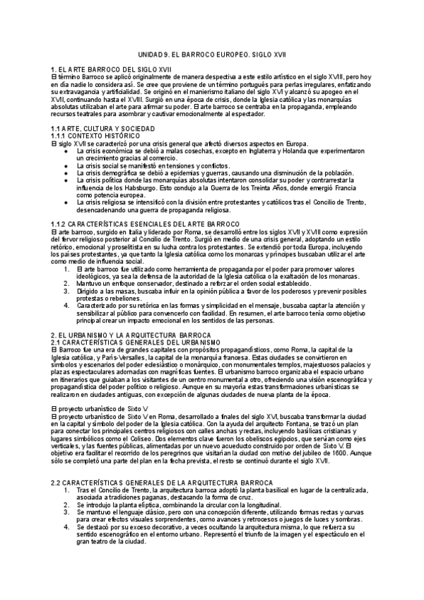 UNIDAD 9. EL BARROCO EUROPEO. SIGLO XVII
