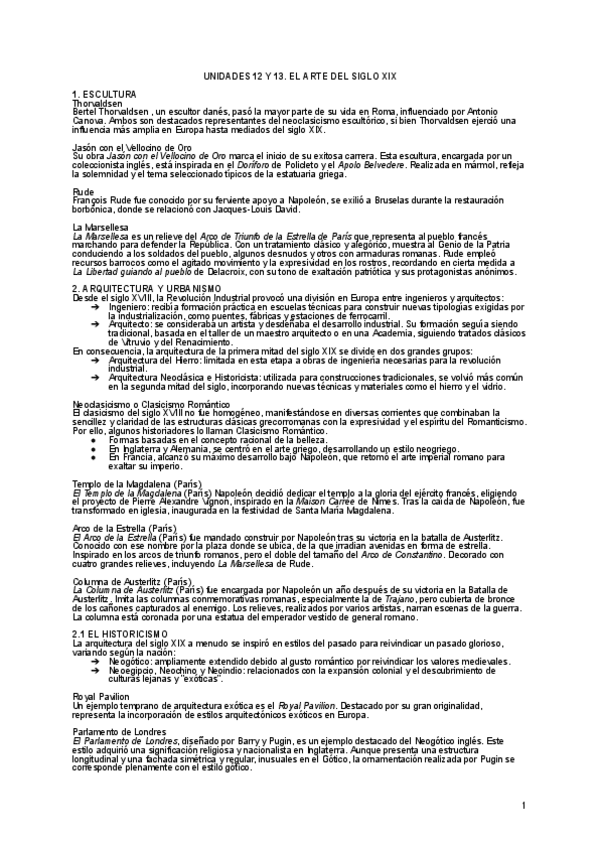 UNIDADES 12 Y 13. EL ARTE DEL SIGLO XIX