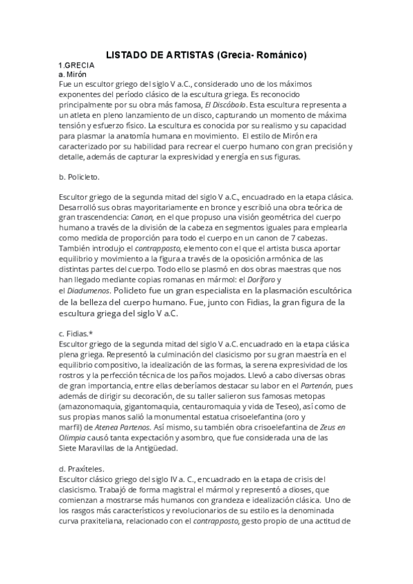 He publicado nuevos apuntes de 2º Historia del Arte: Artistas