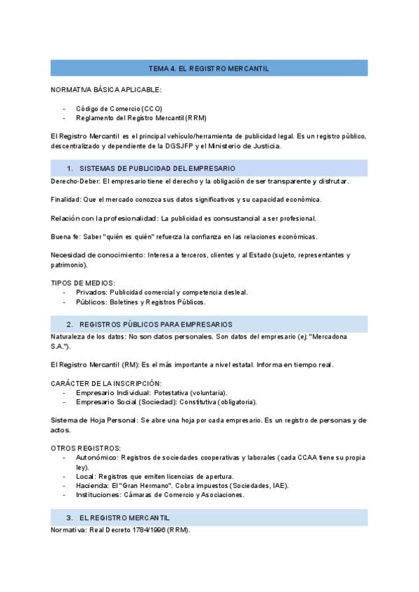 He publicado nuevos apuntes de 2º Derecho del Empresario y las Sociedades Mercantiles: T. 4. EL REGISTRO MERCANTIL..pdf