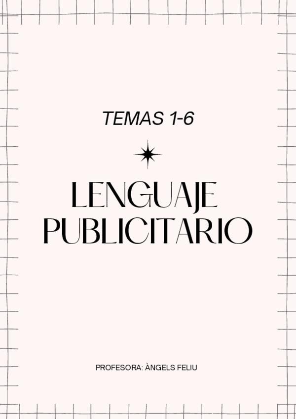 Apuntes de todo el temario (T1-T6) de la asignatura Lenguaje Publicitario