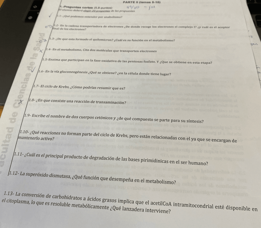 He publicado nuevos examenes de 1º Bioquímica, Genética y Biología Molecular: Exámen 23/24 (metabolismo)
