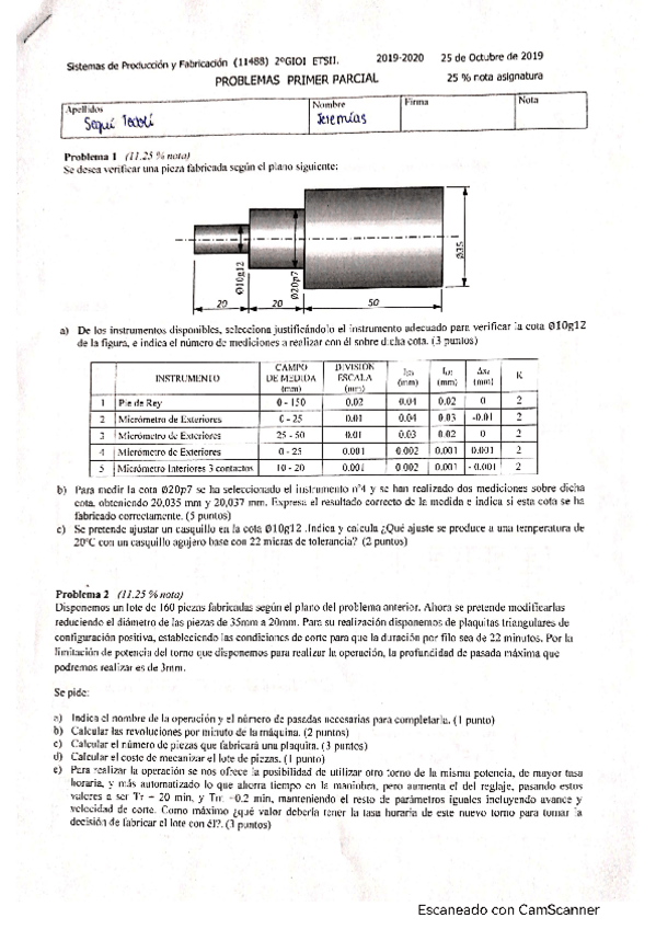 He publicado nuevos examenes de 2º Sistemas de Producción y Fabricación: Primer-Parcial-19-20.pdf