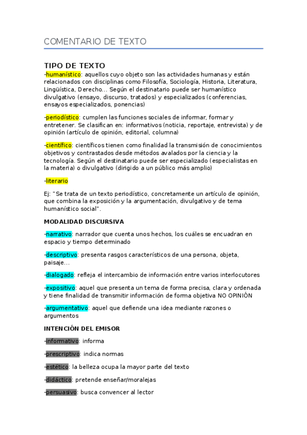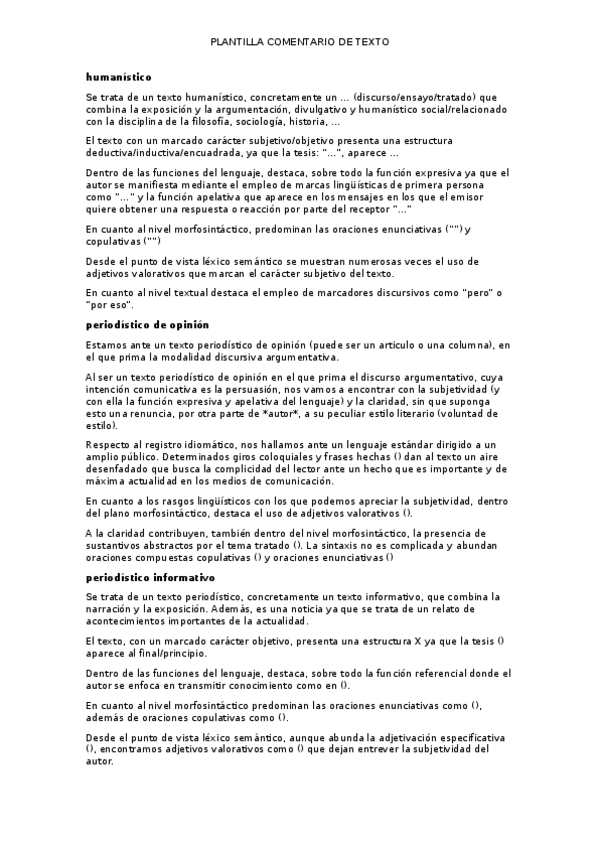 Comentario de texto (plantilla y demás)
