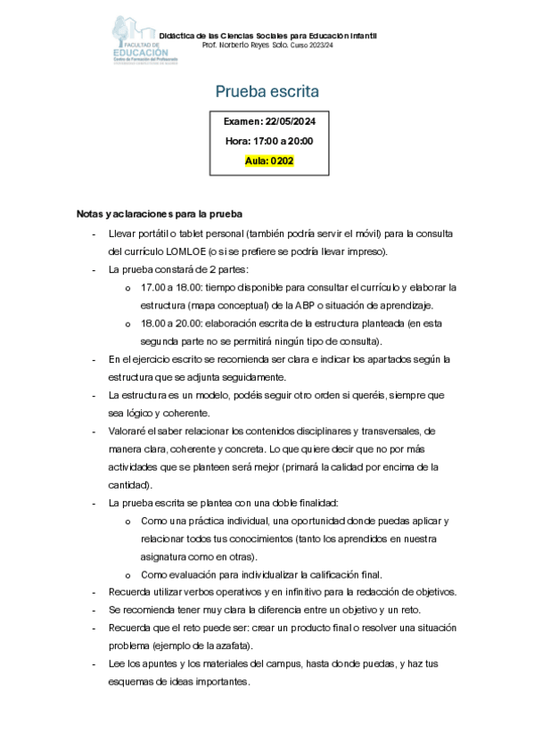 He publicado nuevos examenes de 2º Didactica de las Ciencias Sociales en Educacion Infantil: Prueba-escrita.pdf