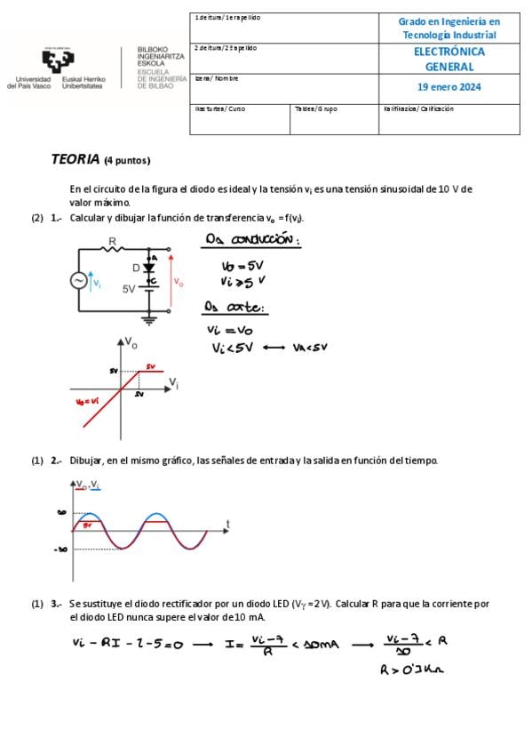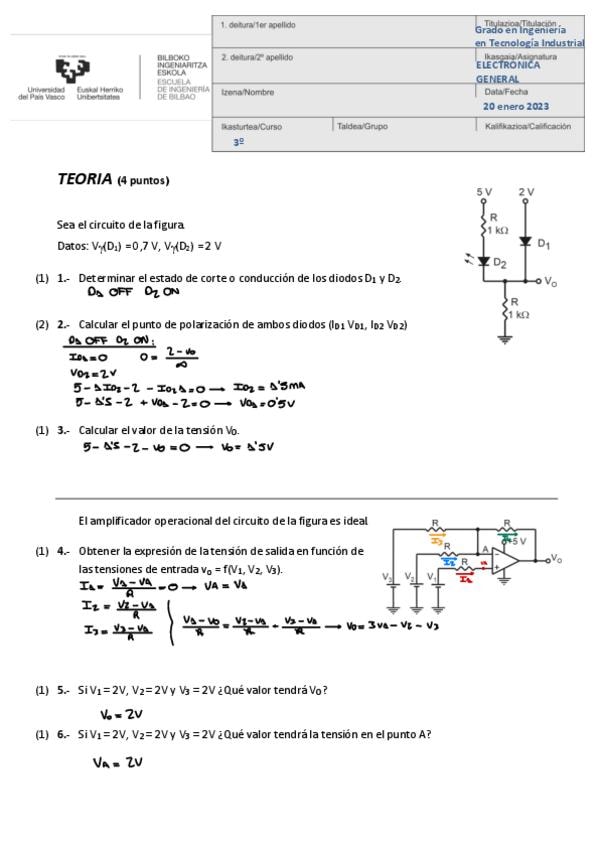He publicado nuevos examenes de 3º Electrónica General: Enero-2023-teoria.pdf