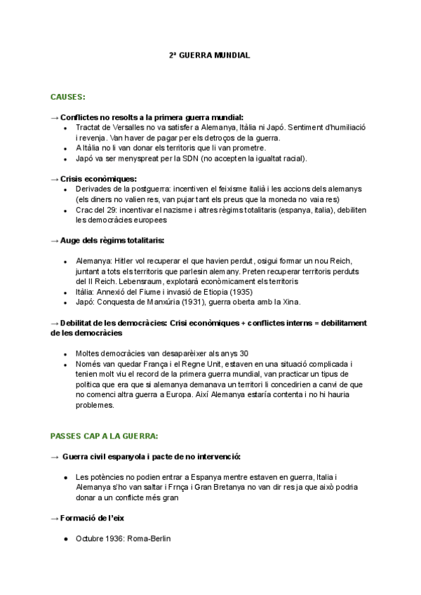 Apuntes de la segunda guerra mundial en catalán, todo sobre las guerras que hubo y sus conflictos, causas, consecuencias, fechas...