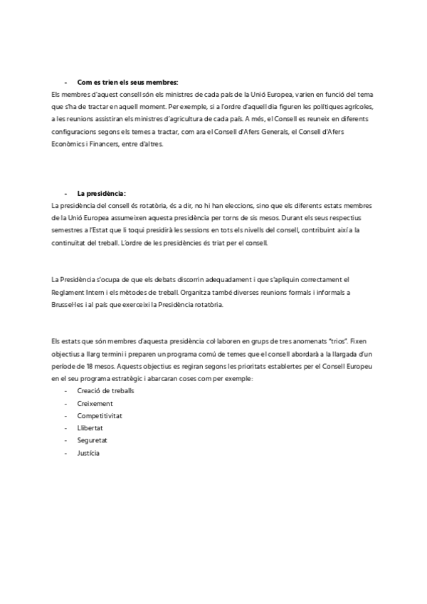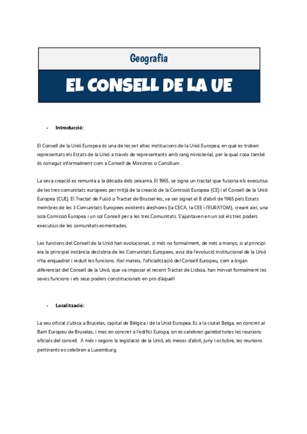 Apuntes sobre el consejo de la Unión Europea en catalán, principios de geografía de segundo de bachillerato, cosas necesarias para el curso.