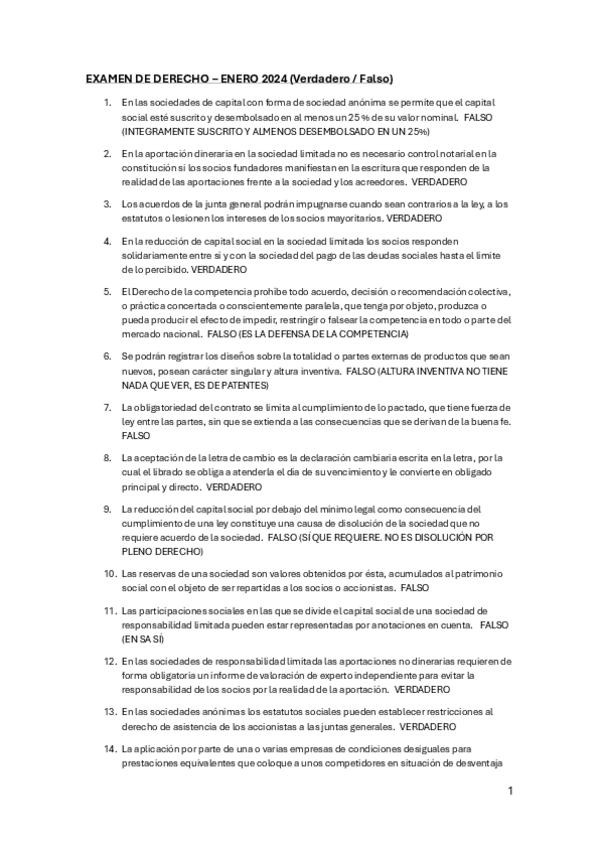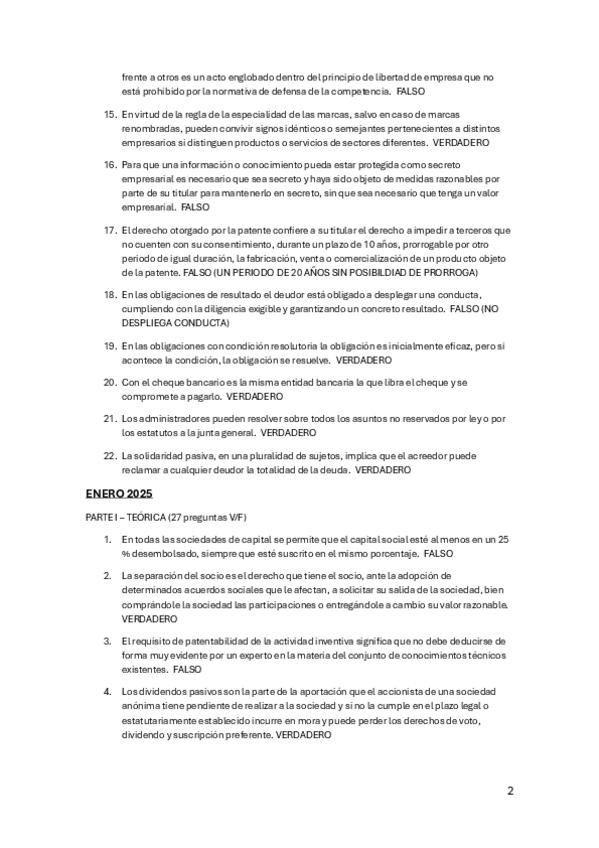 Preguntas de los últimos exámenes de la asignatura DERECHO DE LA EMPRESA 2ºPARCIAL