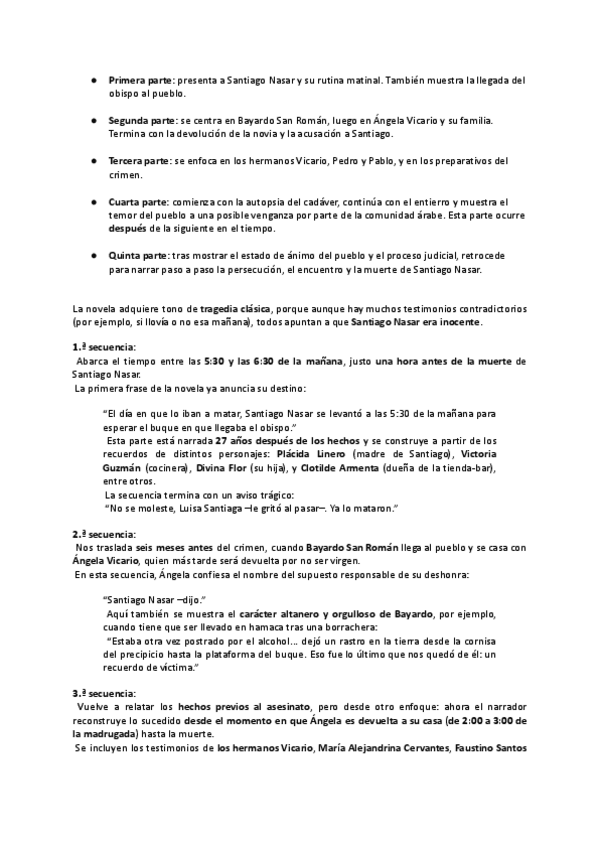 Resumen de las 3 preguntas de literatura de PAU MURCIA libro Crónica de una muerte anunciada