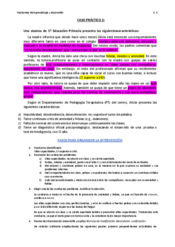 He publicado nuevos ejercicios de 2º TRASTORNOS DEL APRENDIZAJE Y DESARROLLO: Casos Prácticos