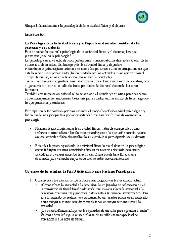 He publicado nuevos apuntes de 1º Psicología de la Actividad Física y del Deporte: Psicologia.pdf
