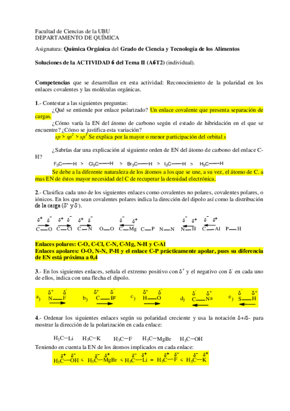 He publicado nuevos apuntes de 1º Química Orgánica: Solución de actividades