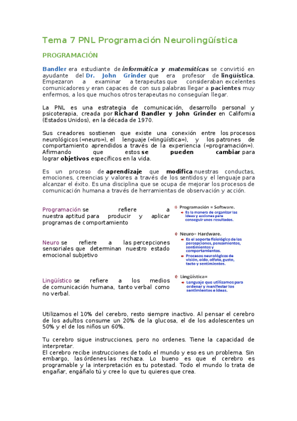 He publicado nuevos apuntes de 1º Marketing y Técnicas de Comunicación Interpersonal: Tema-7-PNL-Programacion-Neurolinguistica.docx
