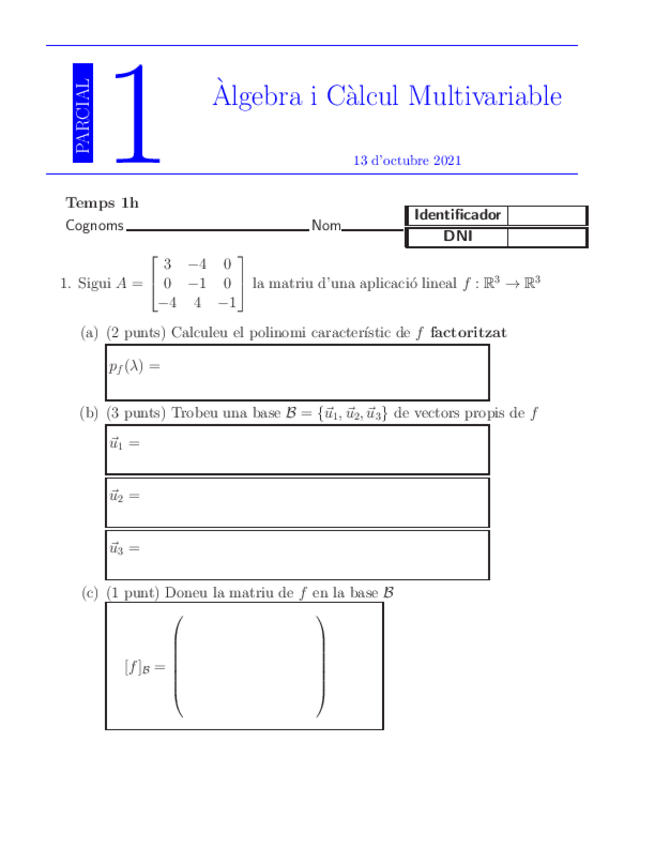 He publicado nuevos examenes de 1º Álgebra y Cálculo Multivariable: PRIMER-PARCIAL-algebraTestSOLUCIO.pdf