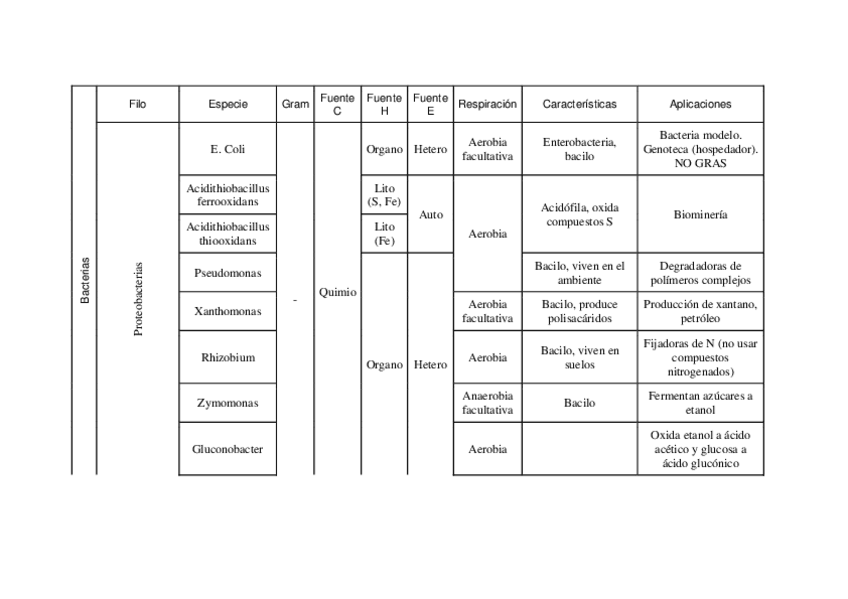 Tabla bacterias y resumenes