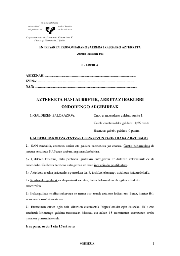 He publicado nuevos apuntes de 1º Economía de la Empresa : Introducción: TEST-EES-Urtarrila-2015-EUSKERA.pdf