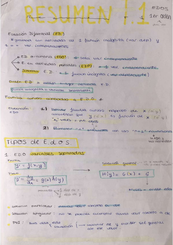 He publicado nuevos apuntes de 2º Ecuaciones Diferenciales: Resumen-Formulario-Edos.pdf