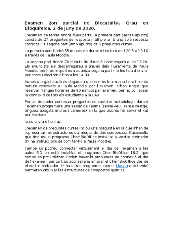 He publicado nuevos examenes de 2º Biocatálisis: convocatoria-segon-parcial.docx