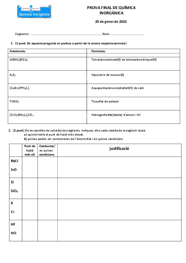 He publicado nuevos examenes de 2º Química Inorgánica: Exámenes