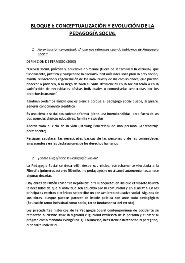 He publicado nuevos apuntes de 1º Pedagogía Social: Preguntas RESUELTAS TODOS los bloques
