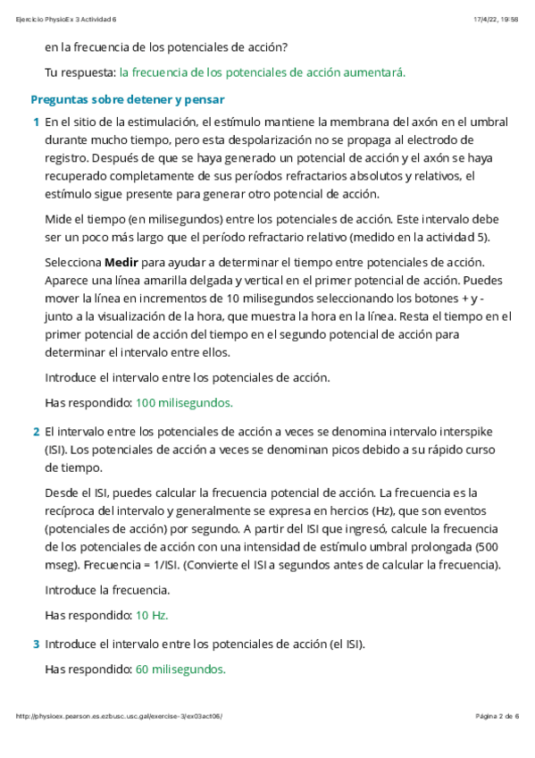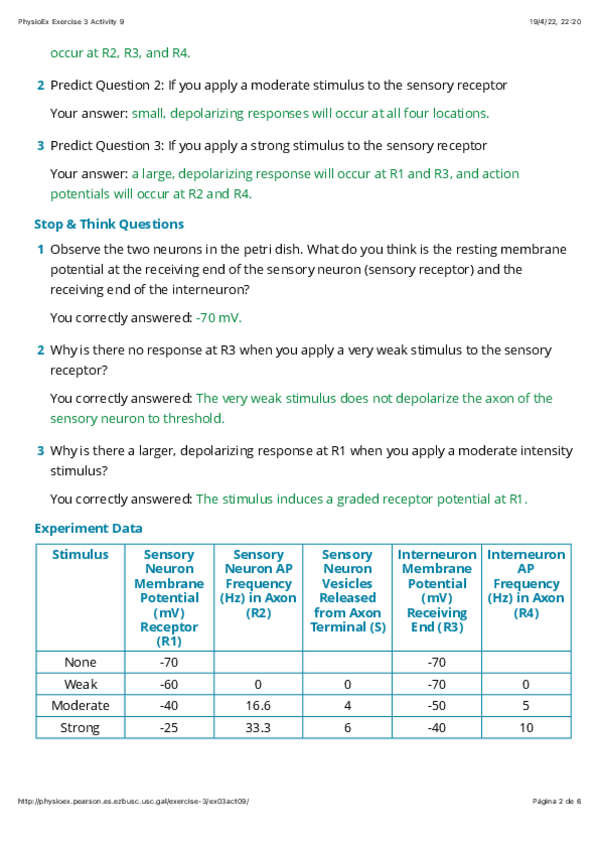 He publicado nuevos ejercicios de 1º Fisiología Veterinaria I, Etología y Protección Animal: practica 1 physioex