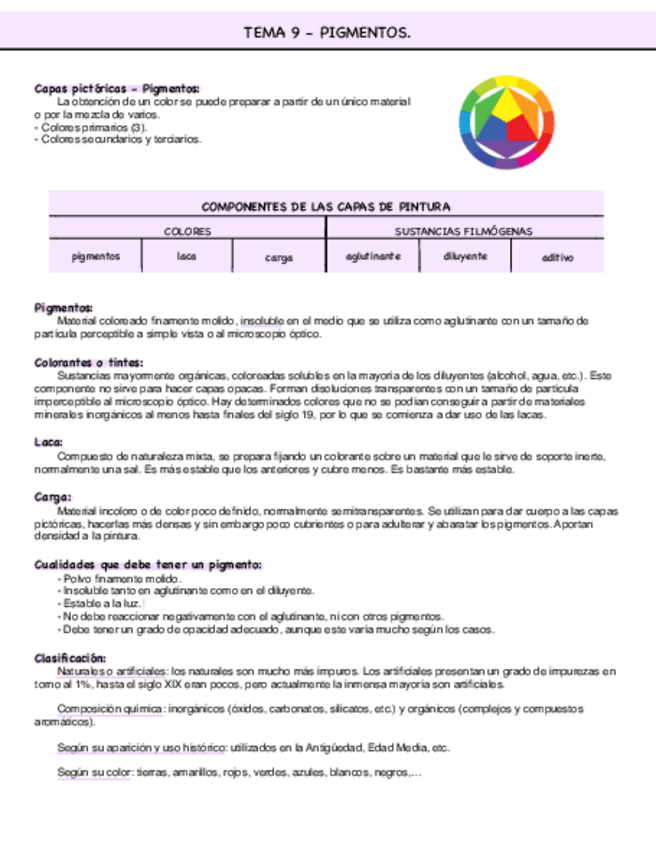 He publicado nuevos apuntes de 1º Historia de las Técnicas Artísticas y de la Construcción: TEMA-9-PIGMENTOS.pdf