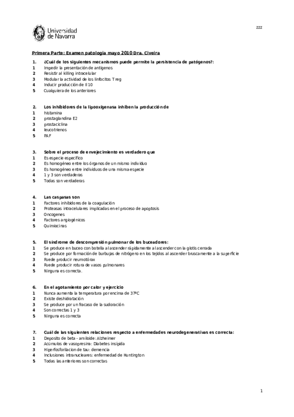 Exámenes y preguntas Patología General