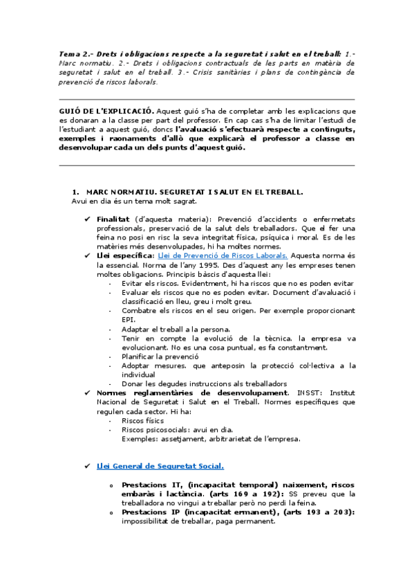 Apunts per temes Dret del Treball II