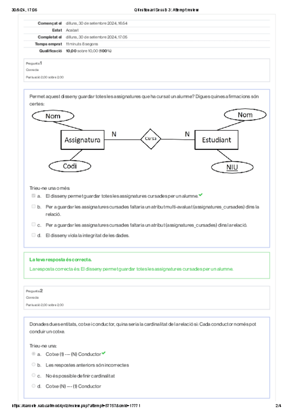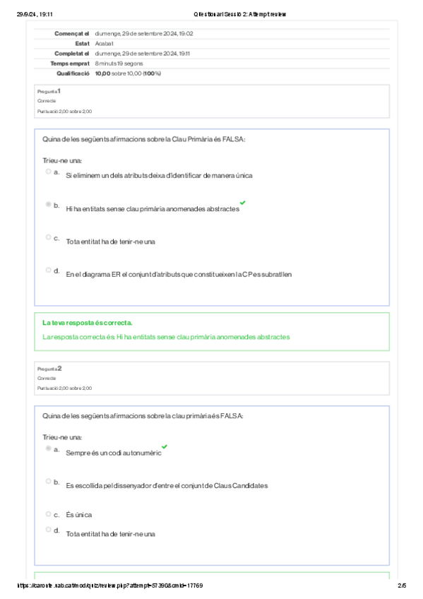 He publicado nuevos ejercicios de 2º Bases de Dades: Questionari-Sessio-2-Attempt-review.pdf