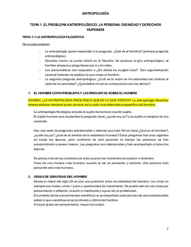 apuntes antropologia hasta el tema 3, con ejemplos de preguntas de examen mencionadas en la explicación de clase