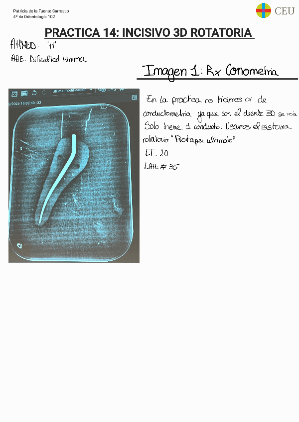 He publicado nuevos apuntes de 4º PATOLOGÍA Y TERAPÉUTICA DENTARIA III: Practica-6-Hasta-Conometria.pdf