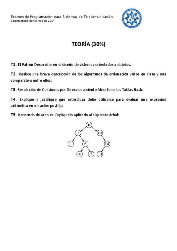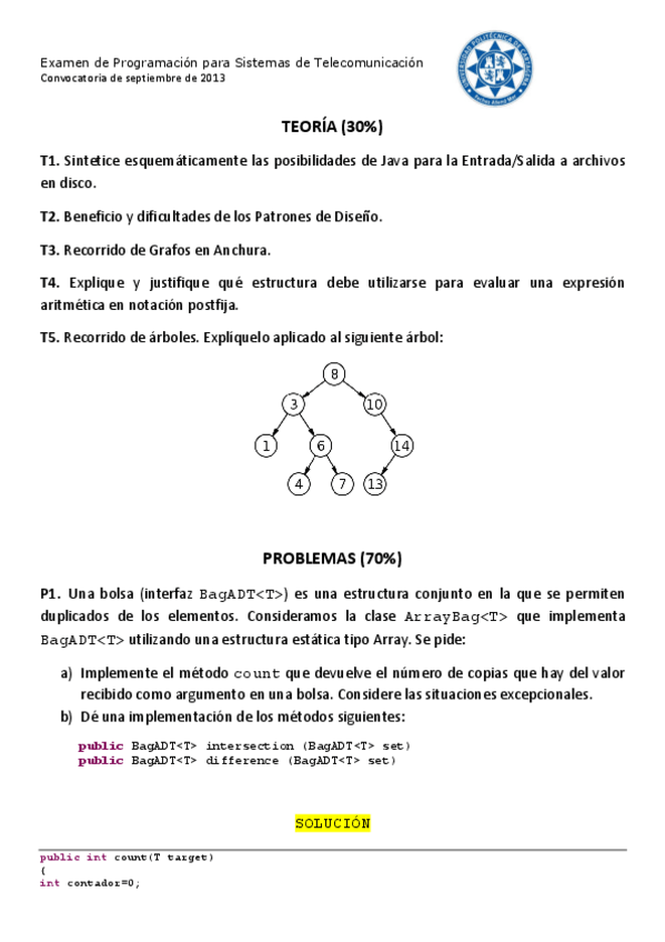 He publicado nuevos apuntes de 3º PROGRAMACIÓN PARA SISTEMAS DE TELECOMUNICACIÓN: examenes