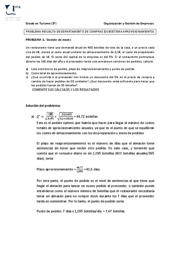 He publicado nuevos apuntes de 1º Organización y Gestión de Empresas: PROBLEMASAPROVISIONAMIENTORESUELTO1.pdf